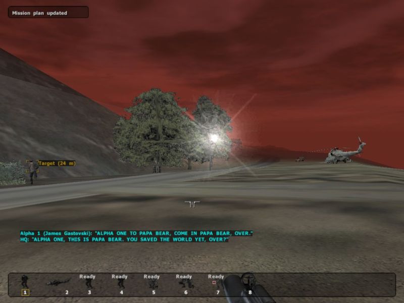 | Death is no stranger in Operation Flashpoint. Camera zooms out Matrix-style as I take a hit from a tank in one of the hardest missions in the game - Alamo. |